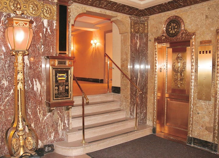 The ornate lobby was glorious even when I lived there. And then you got into the elevators — which were painfully slow — and went upstairs…